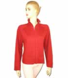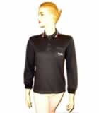 ladies sweat shirt raglan longs sleeve. truck neck. full open nylon zipper at front. collar self fabric one needle top stitch on raglan seam sleeve and body low