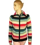 Turtle neck pullover long sleeves. Mixed colored striped on body and sleeves. Rib at neck, sleeve and body low.